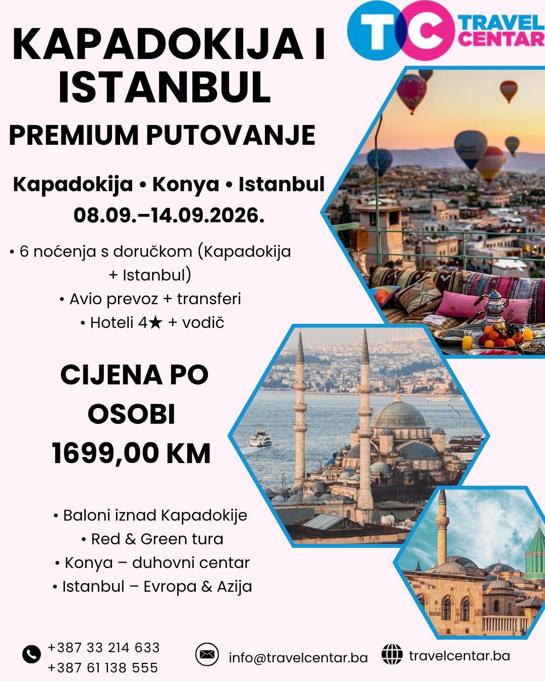 Travel Centar vam donosi premium putovanje u Kapadokiju i Istanbul – spoj nestvarne prirode, duhovnog mira i urbane energije.